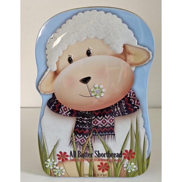 Sehr niedliche Blechdose mit Schafmotiv. Enthielt ursprünglich Kekse und stammt aus Schottland, daher die englische Beschriftung hinten. Die Dose ist ca. 20 cm lang, 14 cm breit und 4 cm hoch.