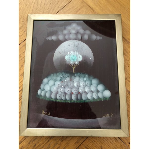 Schönes Bild, Hinterglasmalerei. In hochwertigem Aluminium Rahmen