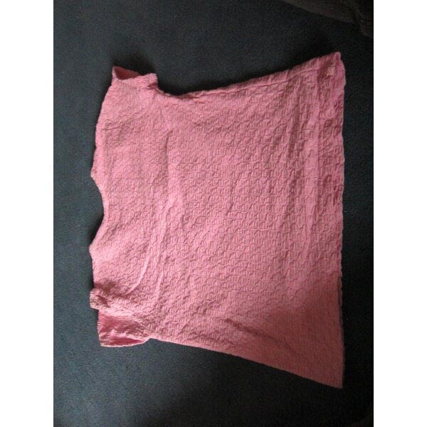 Tolles in sich gemustertes rosa T-Shirt für Mädels. DAs Muster ist etwas aufliegend. Aus 86 % Baumwolle, 12 % Polyester und 2 % Elasthan.