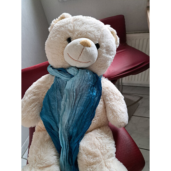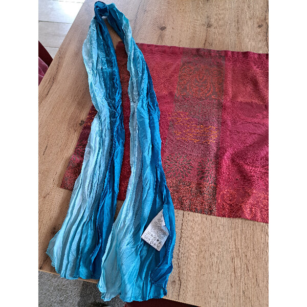 Sehr schöner schmaler Schal in Blautönen, zart und gecreppt