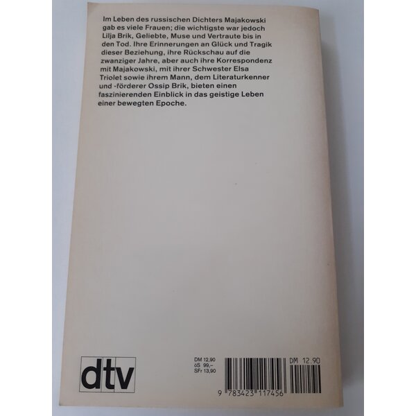 Im Leben des russischen Dichter Majakowski gab es viele Frauen; die wichtigste war jedoch Lilja Brik, Geliebte, Muse und Vertraute bis in den Tod. Ihre Erinnerungen an Glück und Tragik dieser Beziehung, ihre Rückschau auf die zwanziger Jahre, aber auch ihre Korrespondenz mit Majakowski, mit ihrer Schwester Elsa Triolet sowie ihrem Mann, dem Literaturkenner und -förderer Ossip Brik, bieten einen faszinierenden Einblick in des geistige Leben einer bewegten Epoche.