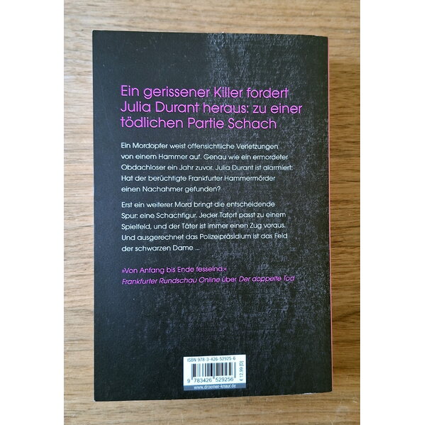 In Frankfurt geht die Angst um, nachdem ein Obdachloser mit einem Hammer erschlagen wurde. Hat ein berüchtigter Frankfurter Serienmörder hier etwa einen Nachahmer gefunden? Für Kommissarin Julia Durant und ihr Team gestalten sich die Ermittlungen äußerst zäh: Es gibt keine Zeugen und kaum verwertbare Spuren. Als kurz darauf eine Frau ermordet wird, scheinen die Fälle nichts miteinander zu tun zu haben, denn der Modus Operandi ist ein völlig anderer. Erst ein weiterer Hammer-Mord bringt Julia Durant ins Grübeln. Dann wird ihr ein alter Stadtplan zugespielt, auf dem Frankfurt in acht mal acht Felder unterteilt ist – wie ein Schachbrett! Jeder Tatort passt zu einem Spielfeld. Und das Feld der schwarzen Dame ist das Polizeipräsidium...