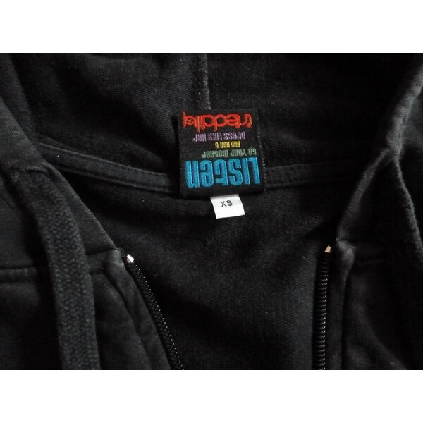 Hallo! Ich tausche diese schwarze Weste von Irie Daily - Styled in Berlin. Die coole Weste mit Kapuze und Taschen besteht aus schwarzem Baumwoll-Stoff (95 % Baumwolle).