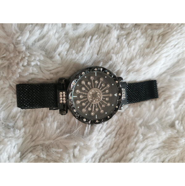 Uhr Armbanduhr mesh Netz magnet verschluss verstellbar schwarz Strass Steinchen cool beweglich