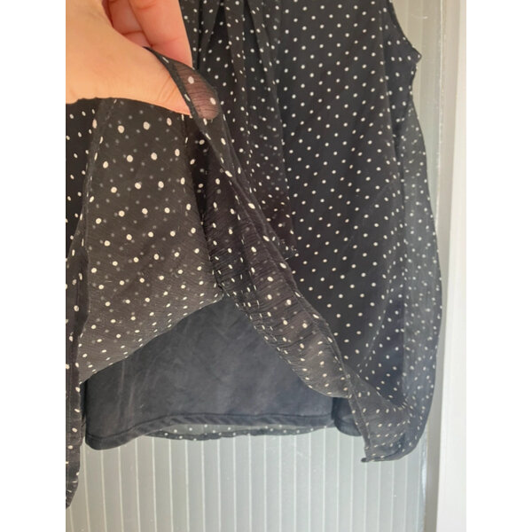 Leichte A-Linie, so dass es angenehm fällt. Das Shirt besteht aus zwei Lagen, die gepunktete obere Lage ist leicht transparent, darunter ist eine zweite schwarze Lage.
