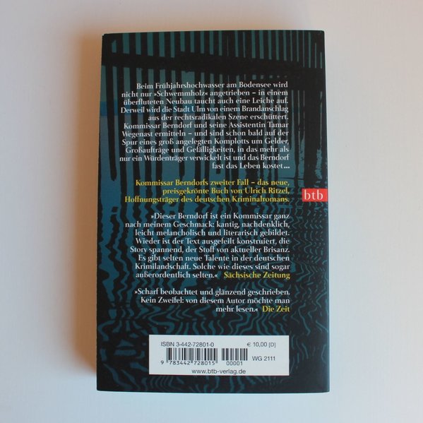 Kantig, nachdenklich, leicht melancholisch und literarisch gebildet. Das ist Kommissar Berndorf, mit dem sich Ulrich Ritzel seit seinem erfolgreichen Erstling "Der Schatten des Schwans" zu den Großen des Krimigenres gesellt hat. Für seinen zweiten Berndorf-Krimi "Schwemmholz" wurde er mit dem Deutschen Krimipreis ausgezeichnet und für den Glauserpreis nominiert. Beim Frühjahrshochwasser wird in Ulm nicht nur "Schwemmholz" angetrieben - in einem überfluteten Neubau taucht eine Leiche auf. Kommissar Berndorf und seine Assistentin Tamara Wegenast auf den Spuren eines groß angelegten Komplotts um Gelder, Großaufträge und Gefälligkeiten, in das mehr als nur ein Würdenträger verwickelt ist und das Berndorf fast das Leben kostet ...