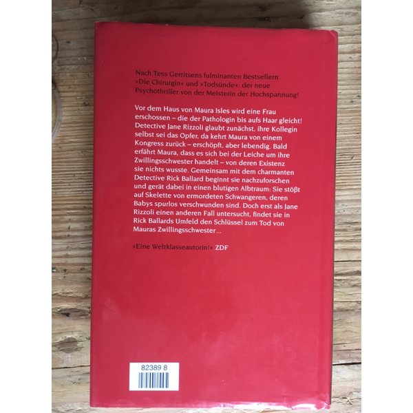 Vor dem Haus von Maura Isles wird eine Frau erschossen – dir der Pathologin bis aufs Haar gleicht! Detective Jane Rizzoli glaubt zunächst, ihre Kollegin selbst sei das Opfer, da kehrt Maura von einem Kongress zurück – erschöpft, aber lebendig. Bald erfährt Maura, dass es sich bei der Leiche um ihre Zwillingsschwester handelt – von deren Existenz sie nichts wusste. Gemeinsam mit dem charmanten Detective Rick Ballard beginnt sie nachzuforschen und gerät dabei in einen blutigen Albtraum: sie stößt auf Skelette von ermordeten Schwangeren, deren Babys spurlos verschwunden sind. Doch erst als Jane Rizzoli an einen anderen Fall untersucht, findet sie in Rick Ballards Umfeld den Schlüssel zum Tod von Mauras Zwillingsschwester.