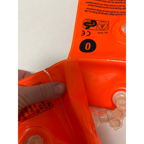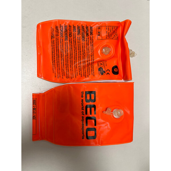 Leuchtend orange Schwimmhilfen der Marke Beco für Kinder von 15-30 kg.