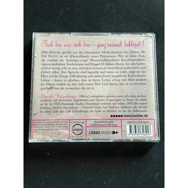 Isch bin wie isch bin - ganz normal bekloppt! DER SPIEGEL spricht von der "blondesten Medienkarriere des Jahres", für DIE BUNTE ist sie "Deutschlands neues Phänomen". Wer ist diese Frau, die rundum für Aufsehen sorgt? Wasserstoffblondierte Kunsthaarmähne, cappuccinofarbene Studiobräune und Doppel-D-Silikon-Busen. An "der Katze" scheint wenig echt zu sein, trotzdem kommt sie bestechend authentisch und ehrlich rüber. Ihre Sprüche sind legendär und wenn sie redet, trägt sie das Herz auf der Zunge. Offenherzig und unbeschwert wandelt die Katze durchs Leben - kaum zu glauben, dass in ihrem Leben schon viel Mist passiert ist. Davon erzählt sie hier zum ersten Mal. Und davon, wie sie es trotzdem geschafft hat, die zu werden, die sie ist.