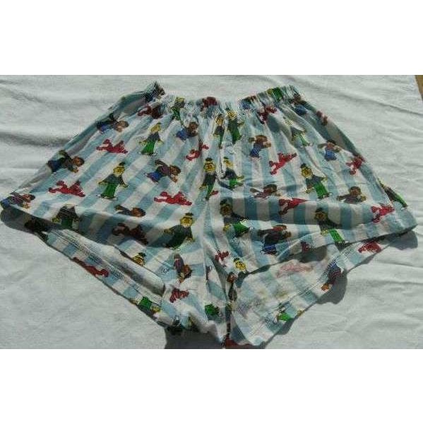 Die Sesamstraße Boxershort hat die Größe M. Sie ist blau weiß gestreift und hat verschiedene Seesamstraßen Figuren aufgedruckt.