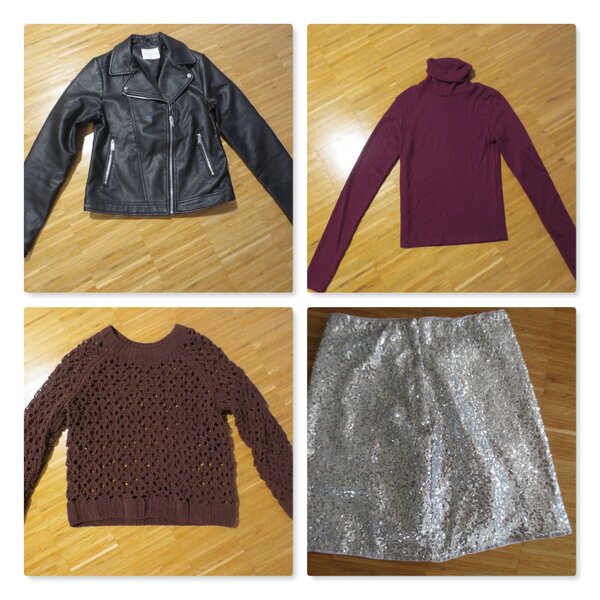 Rock Pailetten 158 164 Lederjacke schwarz Mädchen lila Shirt S Benetton M l