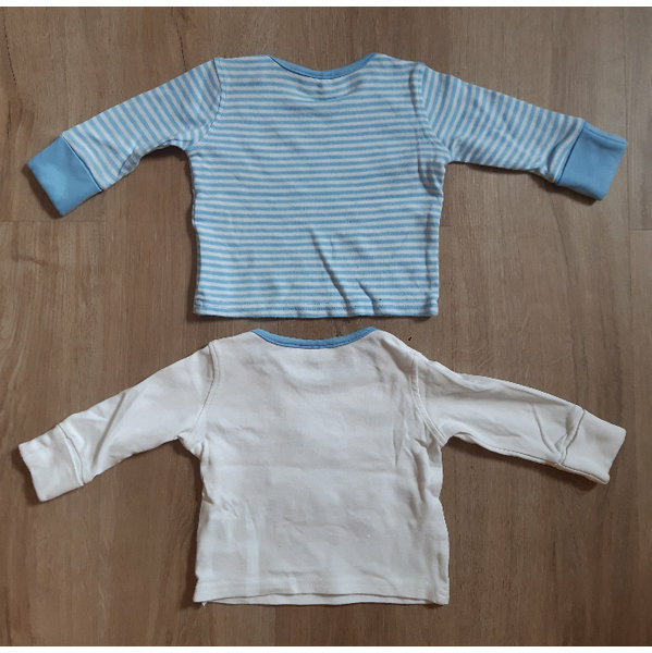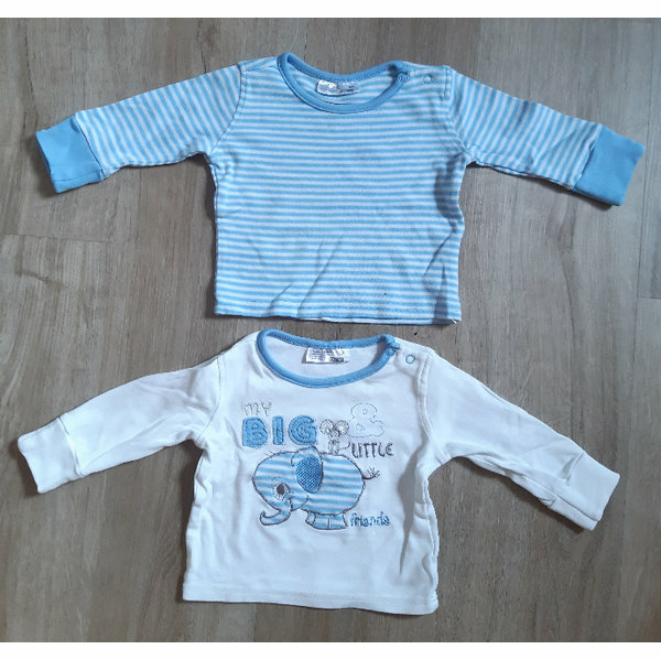 2 hellblau-weiße Langarmshirts in der Größe 68...