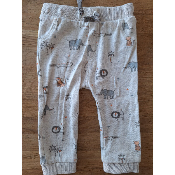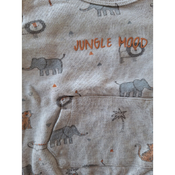 Schönes Set aus Hose und Pullover aus dünnem Baumwollstoff. Der Pullover hat eine aufgesetzte Tasche und den Schriftzug "Jungle Mood". Das Set ist von der Marke Staccato und hat die Größe 68cm.
