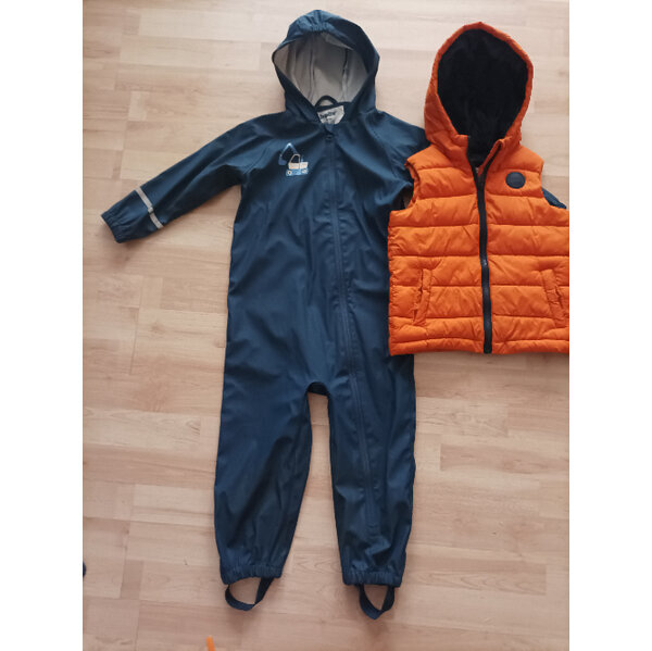 Der Overall (98/104) weist Tragespuren auf, die Weste (Gr. 98) ist in einem guten gepflegten Zustand