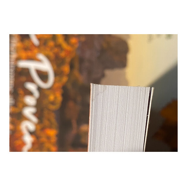 winziger Wasserfleck an der oberen rechten Ecke, siehe Bild 2 (nur an den Schnitten, nicht im Buchinneren)