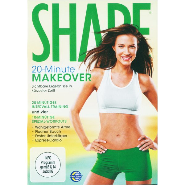 Es ist nicht immer leicht, genug Zeit für ein Workout zu finden. Wenn die Zeit mal knapp ist, kommt das 20-Minute Makeover mit einer Auswahl an kurzen, aber hocheffektiven Workouts, genau richtig! Das Intervall-Training kurbelt den Stoffwechsel an und trainiert den gesamten Körper effizient und wirkungsvoll. Die vier 10-minütigen Spezial-Workouts sind auf die Straffung der bekannten Problemzonen Bauch, Beine, Po und Arme ausgerichtet, um dein Workout noch effektiver zu gestalten. Mit Abwechslung und Spa? zum sexy Body in Rekordzeit!