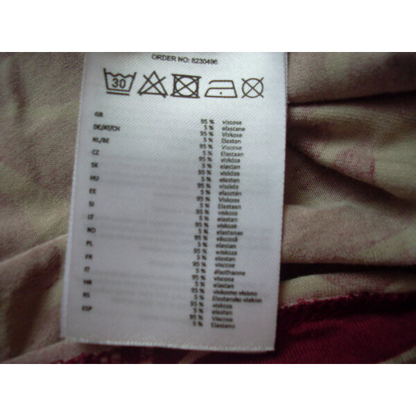 95% Viskose, 5% Elasthan. Schöne weiche Qualität, sehr anschmiegsam und angenehm auf der Haut.