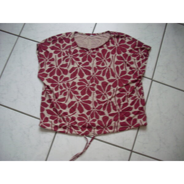 Shirt T-Shirt Bluse rot beige mit Tunnelzug top Viskose Elastan Kastenform Schlupfbluse