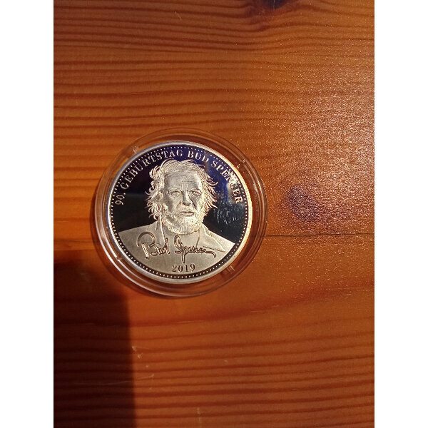 Lieferung inklusive Sammelalbum und Echtheitszertifikat von MDM mit (Print-) Unterschrift v. MDM- Geschäftsführer Nils Hagemann.Münze + Zertifikat im Sammelalbum. 333 Silber/Spiegelglanz/30 mm Durchmesser/7 g/Vorderseite; Portrait Bud Spencer und seine Unterschrift/ Rückseite: Filmstreifen mit charakteristischen Motiven aus seinen Kinofilmen. Kein Versand an Packstationen.