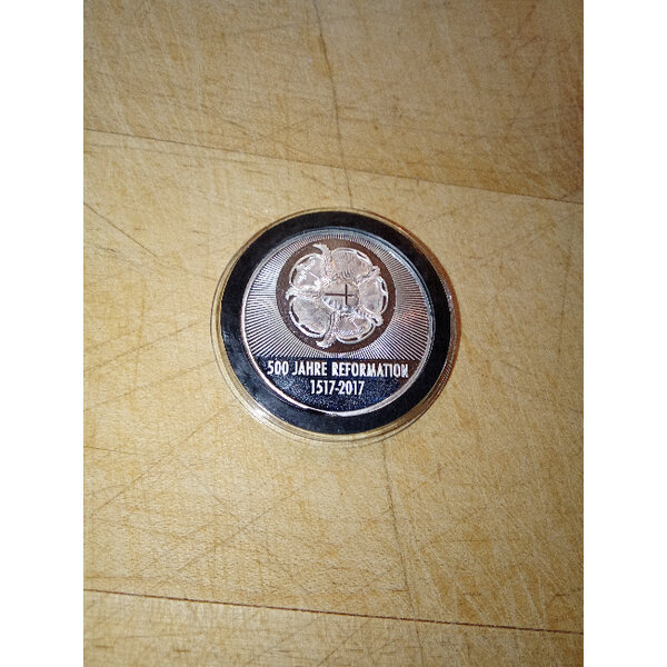 Silbermünze in 333er Legierung, kommt in original Kapsel. Durchmesser 30 mm, Stempelglanz in Gewicht 7,3 Gramm. Die Vorderseite zeigt Martin Luther, die Rückseite zeigt die Lutherrose. Ausgabejahr war 2017 zum 500-jährigen Jubiläum der Reformation. Das Zertifikat trâgt die Print- Unterschrift von MDM - Geschäftsführer Nils Hagemann. Kein Versand an Packstationen.