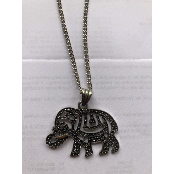 Silberne lange Kette mit schönem Elefant-Anhänger.