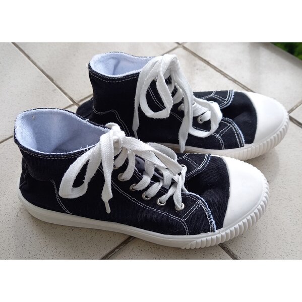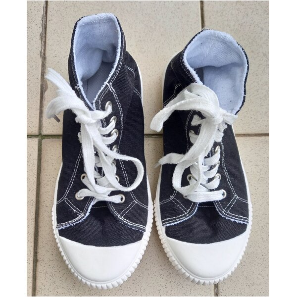 Sehr gut, selten getragen, keine Risse oder Flecken im Stoff, Gummirand gereinigt. Dies ist die Beschreibung des Vorbesitzers, der ich zustimmen kann. Ich habe sie hier ertauscht, aber sie passen mir nicht. Fallen eher klein aus. Sohlenlänge außen 25.5 cm.