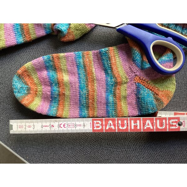 gestrickte Socken in geschätzter Größe 33 bis 35, sie sind bis zur Ferse ca. 20,5 cm lang
