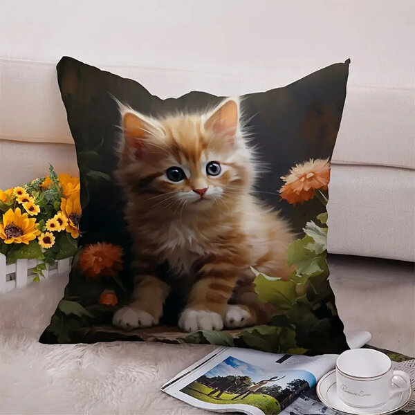 Neuer Kissenbezug mit Katzenmotive und Reißverschluss