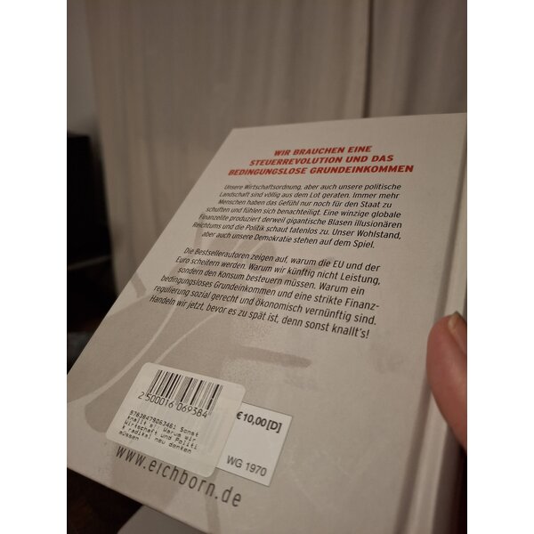 Unsere Wirtschaftsordnung, aber auch unsere politische Landschaft sind völlig aus dem Lot geraten. Immer mehr Menschen haben das Gefühl nur noch für den Staat zu schuften und fühlen sich benachteiligt. Eine winzige globale Finanzelite produziert derweil gigantische Blasen illusionären Reichtums und die Politik schaut tatenlos zu. Die Bestsellerautoren zeigen auf, warum die EU und der Euro scheitern werden. Warum wir künftig nicht Leistung, sondern den Konsum besteuern müssen. Warum ein Bedingungsloses Grundeinkommen, Gemeingüter und eine strikte Finanzregulierung sozial gerecht und ökonomisch vernünftig sind. Handeln wir jetzt, bevor es zu spät ist, denn sonst knallt´s!
