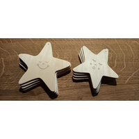 10 Sterne aus Holz mit Lichung zum Hängen - in zwei unterschiedlichen Größen, jeweils fünfmal ca. 8,5cm und fünfmal ca. 10cm groß - einseitig ... mehr