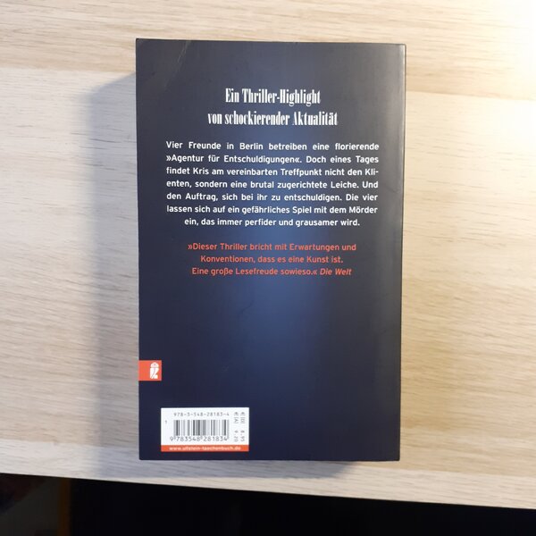 Die fetten Jahre sind vorbei. Eine gute Geschäftsidee ist gefragt. Frauke, Tamara, Kris und Wolf, vier junge Berliner, stört, dass sich niemand mehr für nichts verantwortlich fühlt. Sie setzen auf die heilsame Kraft eines einfachen »Sorry« und gründen eine »Agentur für Entschuldigungen«. Erstaunt stellen sie fest, dass die Resonanz überwältigend ist. Bis Kris eines Tages am vereinbarten Treffpunkt nicht den Klienten, sondern eine brutal zugerichtete Leiche findet. Und den Auftrag, sich bei ihr zu entschuldigen. Die vier lassen sich auf ein gefährliches Spiel mit dem Mörder ein, das immer perfider und grausamer wird.
