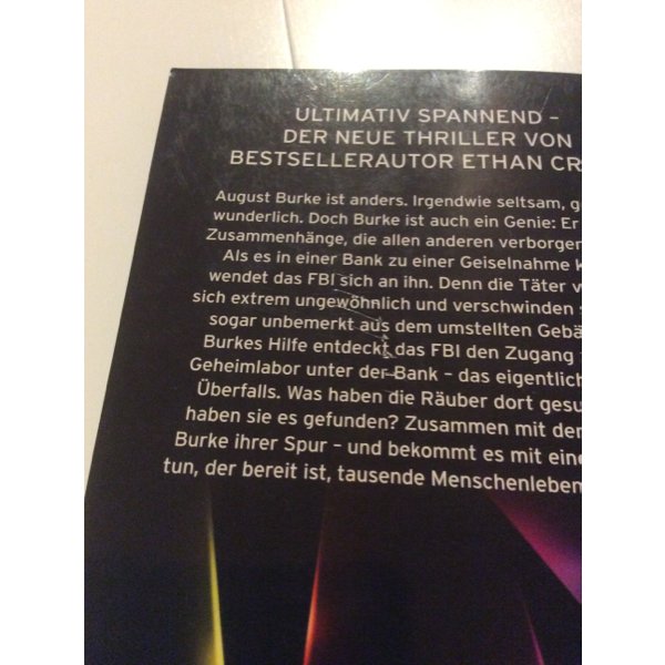 August Burke ist anders. Irgendwie seltsam, geradezu wunderlich. Doch Burke ist auch ein Genie: Er erkennt Zusammenhänge, die allen anderen verborgen bleiben. Als es in einer Bank zu einer Geiselnahme kommt, wendet das FBI sich an ihn. Denn die Täter verhalten sich extrem ungewöhnlich und verschwinden schließlich sogar unbemerkt aus dem umstellten Gebäude. Mit Burkes Hilfe entdeckt das FBI den Zugang zu einem Geheimlabor unter der Bank - das eigentliche Ziel des Überfalls. Was haben die Räuber dort gesucht? Und haben sie es gefunden? Zusammen mit Special Agent Carter folgt Burke ihrer Spur - und bekommt es mit einem Feind zu tun, der bereit ist, tausende Menschenleben zu opfern.
