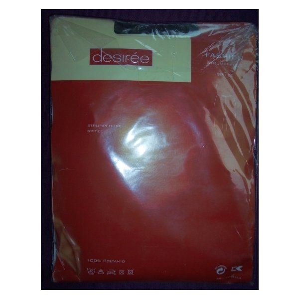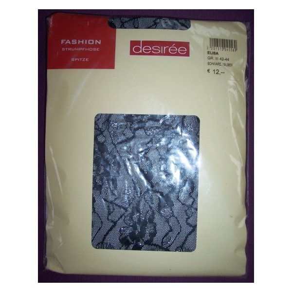Schwarze Spitzenstrumpfhose mit silbernen Akzenten.