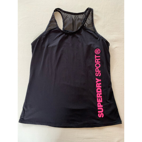 Schwarzes Sport Shirt, tailliert, ohne Ärmel der Marke Superdry,