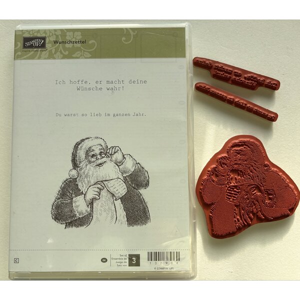 Gebrauchtes Stempelset Wunschzettel mit Nikolausmotiv und den Sprüchen "Ich hoffe, er macht deine Wünsche wahr" und "Du warst so lieb im ganzen Jahr".