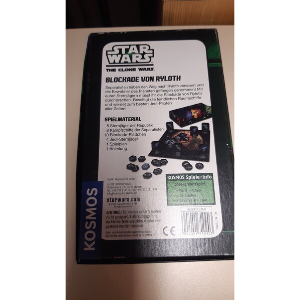 Erlebe die Welt von Star Wars: The Clone Wars! Wer räumt bei der galaktischen Blockade die meisten Raumschiffe aus dem Weg? Separatisten haben unter der Führung Wat Tambors die Bewohner des Planeten Ryloth gefangen genommen! Um Ryloth zu befreien, müssen die Jedi eine große Streitmacht der Handelsföderation besiegen, bevor sie den Bewohnern zu Hilfe eilen! Versuche mit deinen Jedi-Raumschiffen so viele Gegner wie möglich auszuschalten. Mit erfolgreichen Würfen, die die feindlichen Raumschiffe zu Fall bringen, rückst du auf der Punkteleiste vor. Geschick und Augenmaß helfen dir dabei die galaktische Blockade von Ryloth zu durchbrechen. Wer dabei am meisten Raumschiffe aus dem Weg räumt, gewinnt das Spiel! Für 2 - 4 Spieler ab 6 Jahren.
