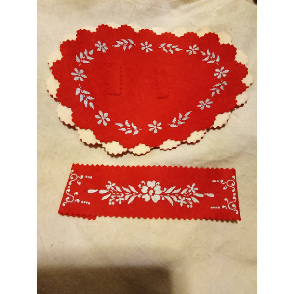 Es sind aufeinander genähte Filzscheiben. Das schmale Deckchen