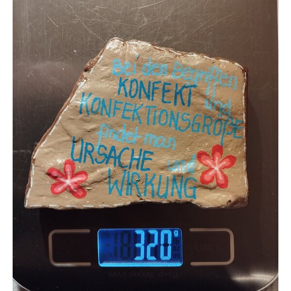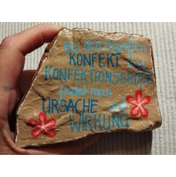 Handverlesen und Handbemalt mit Acrylfarbe und anschließender Lackversiegelung auf der Vorderseite