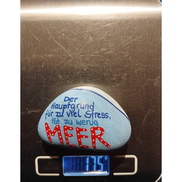Handverlesen und Handbemalt mit Acrylfarbe und anschließender Lackversiegelung auf der Vorderseite