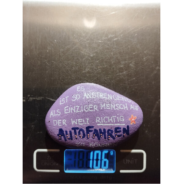 Handverlesen und Handbemalt mit Acrylfarbe und anschließender Lackversiegelung auf der Vorderseite