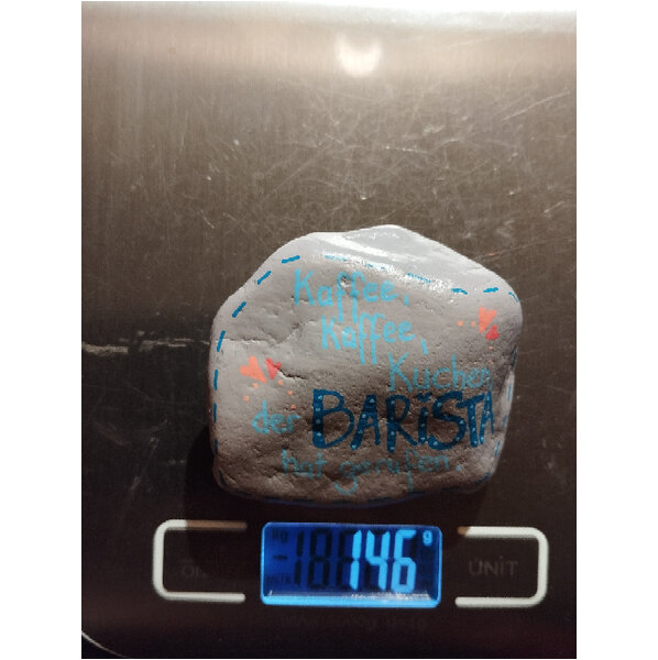 Handverlesen und Handbemalt mit Acrylfarbe und anschließender Lackversiegelung auf der Vorderseite