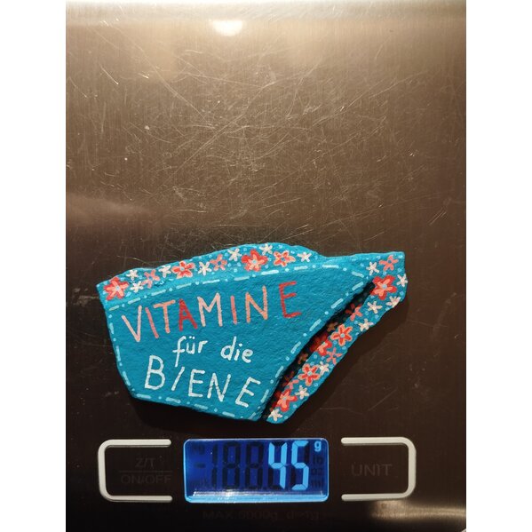 Handverlesen und Handbemalt mit Acrylfarbe und anschließender Lackversiegelung auf der Vorderseite