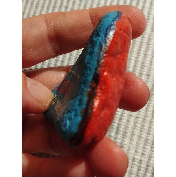Handverlesen und Handbemalt mit Acrylfarbe und anschließender Lackversiegelung auf der Vorderseite