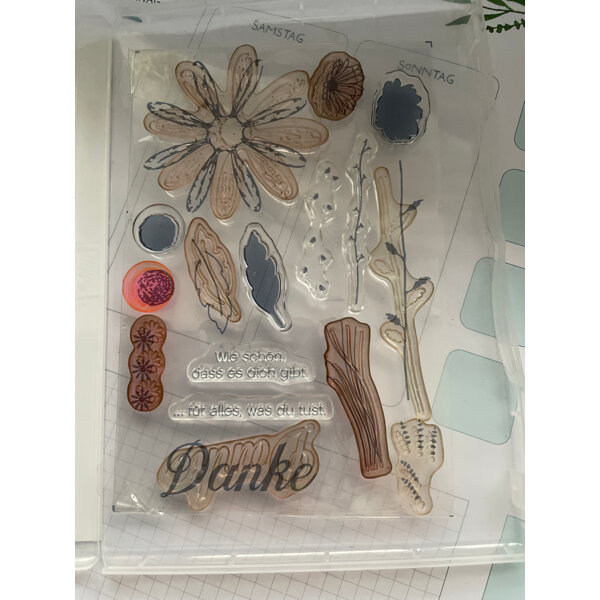 16 klare Stempel Gänseblümchen davon 3 Schrift Stempel