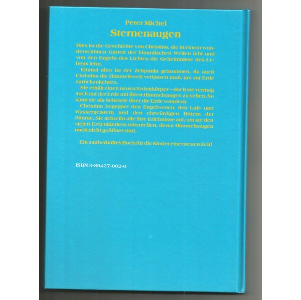 KLAPPENTEXT: "Dies ist die Geschichte von Christina, die in einem wunderschönen Garten der himmlischen Welten lebt und von den Engeln des Lichtes die Geheimnisse des Lebens lernt. Einmal aber ist der Zeitpunkt gekommen, da auch Christina zur Erde geschickt wird. Sie erhält einen neuen Erdenkörper - doch Sie vermag auch auf der Erde mit Ihren Himmelsaugen zu sehen. Sie schreibt alle Ihre Erlebnisse auf, um sie den vielen Erdenkindern mitzuteilen, deren Himmelsaugen noch nicht geöffnet sind....Ein zauberhaftes Buch für die Kinder einer neuen Zeit."