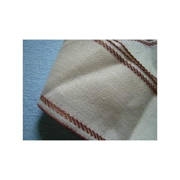 Stickband aus weißem Leinenstoff mit grünem Rand...