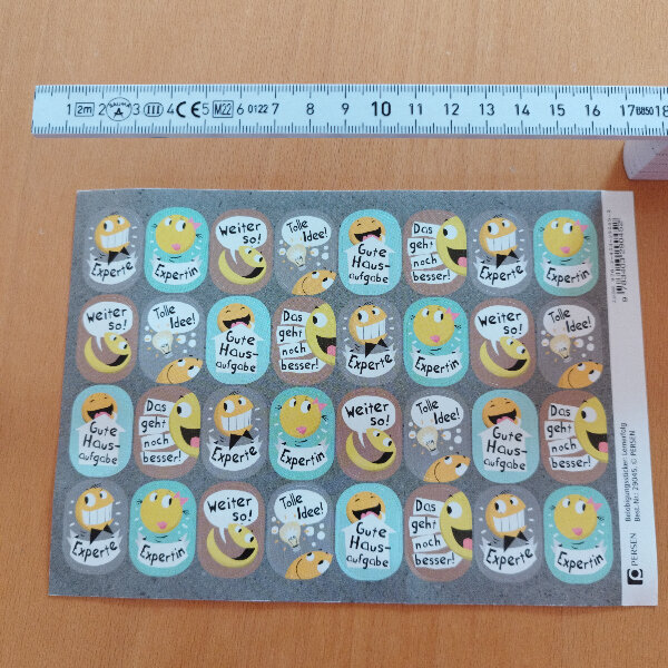 Ein Bogen mit Belobigungssticker für Eltern, Lehrer oder ein Fleiß Heft.