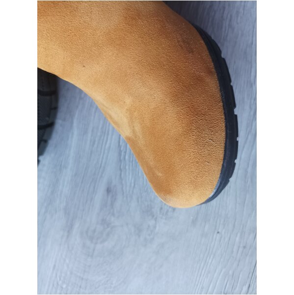 guter Zustand, am rechten Stiefel zwei kleine Abriebspuren an der Spitze sowie links seitlich, Sohlen einwandfrei; Versand per DHL-Päckchen