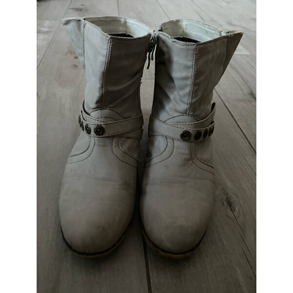 Die hinteren Sohlen müsste man erneuern lassen. Für eine Saison sind die Stiefeletten sicher noch gut. Waren mir zu schade zum Wegwerfen, deshalb hier als Schnäppchen.