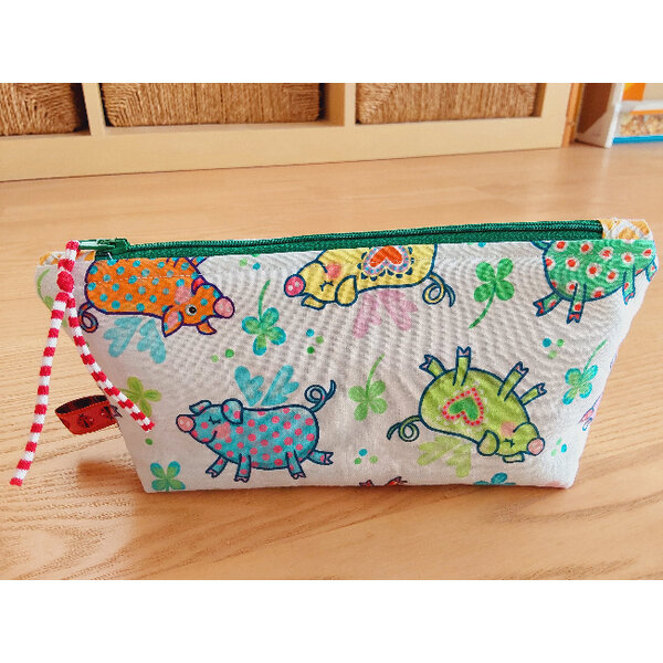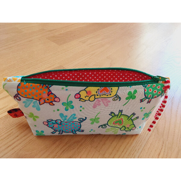 Das Stiftemäppchen wurde aus neuen Stoffen genäht und ist ca. 23 x 11 x 7 cm groß. Es wurde mit Vlies gefüttert und mit Bändern verziert. Die Farben können etwas anders ausfallen als auf den Fotos. Ich nähe mit viel Liebe und Spaß, aber nur als Hobby - bin also nicht perfekt :)!